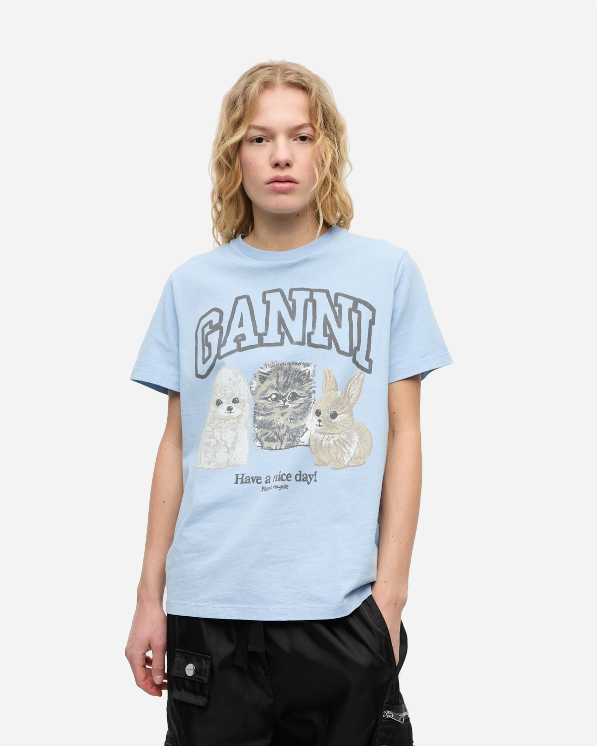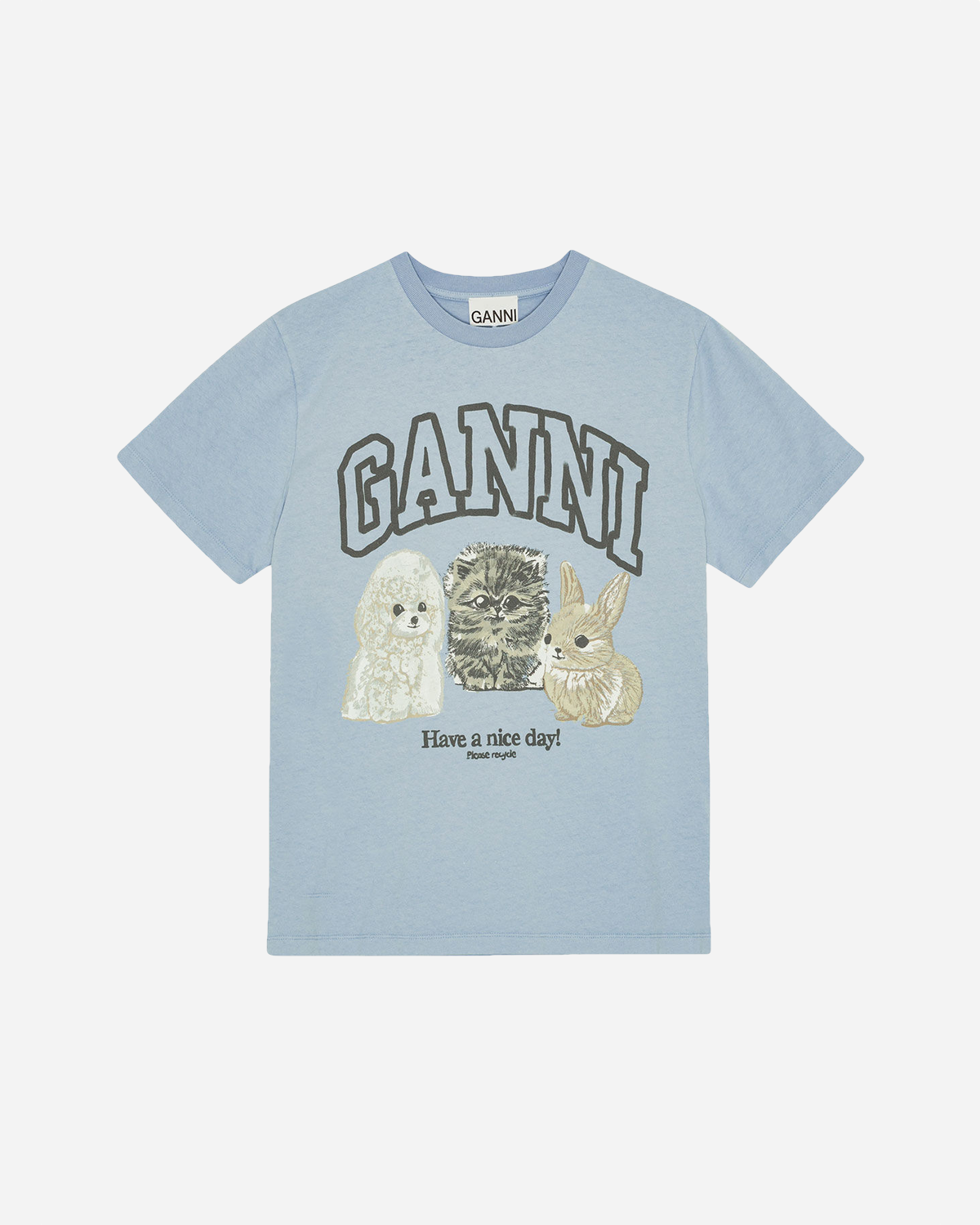 Basic Cotton Jersey Animals Relaxed T-shirt - Chambray Blue